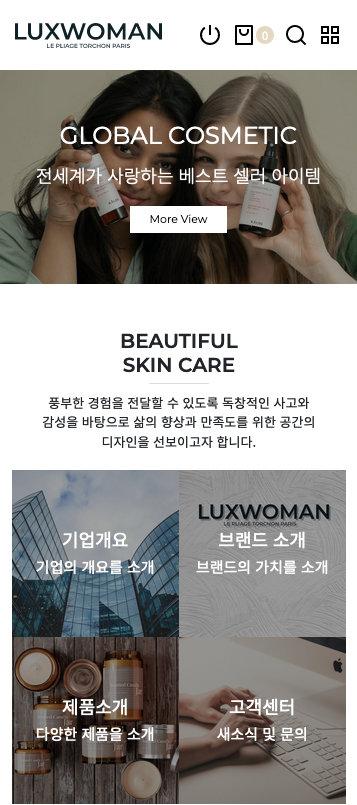 - 설치시 상품 등록은 지원하지 않기에 데모사이트와 같이 상품 출력 된 레이아웃은 출력되지 않습니다.(직접 관리자모드에서 상품 입력 해야합니다.)
