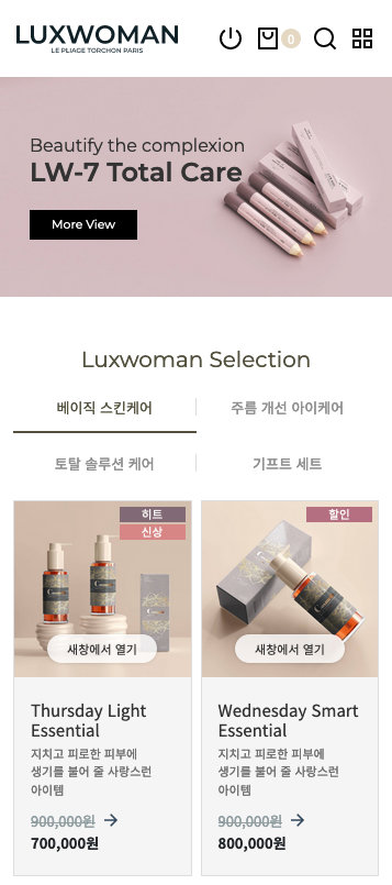- · 이윰빌더에서 제공하는 분류(카테고리) 상품 출력 스킨입니다.('관리자 - 테마설정관리 - EB상품추출관리'에서 설정)